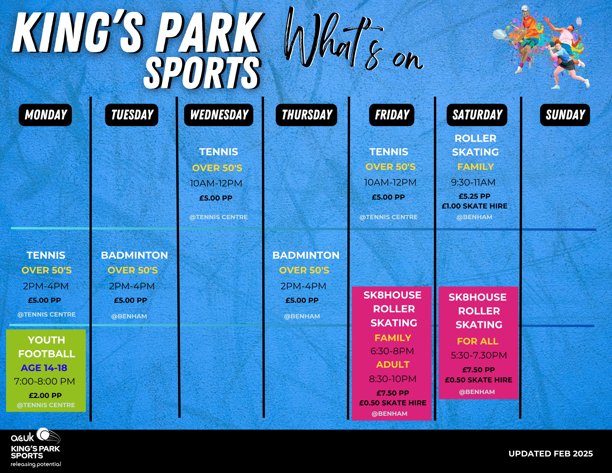 Benham Sports Centre and King’s Park Tennis Centre – two flexible sports facilities in the heart of the Midlands.
